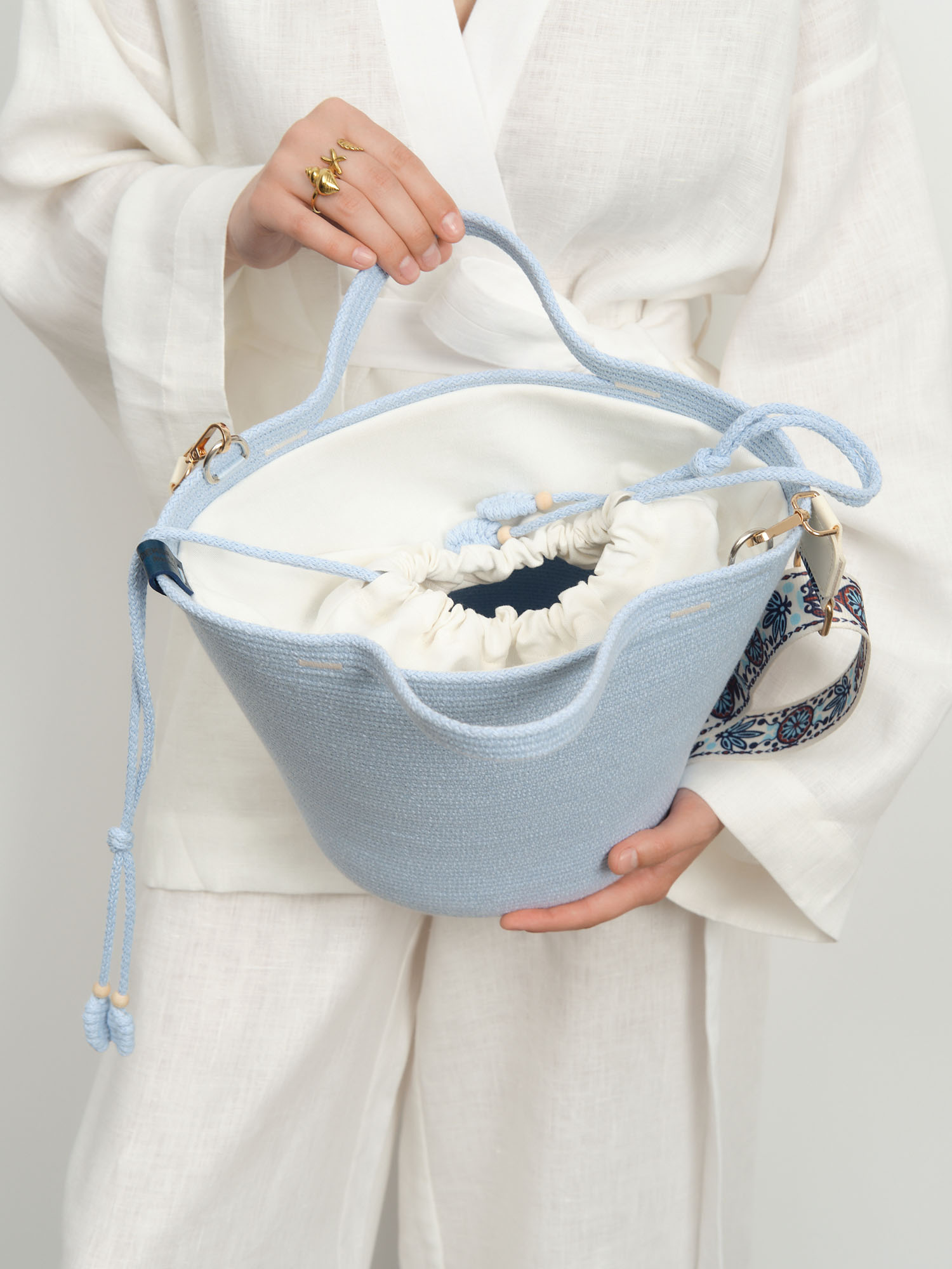 Стильная сумка из натурального джута с нежным голубым оттенком – идеальный аксессуар для летнего сезона. Модель Andrea сочетает в себе экологичность натуральных материалов, модный дизайн и практичность.