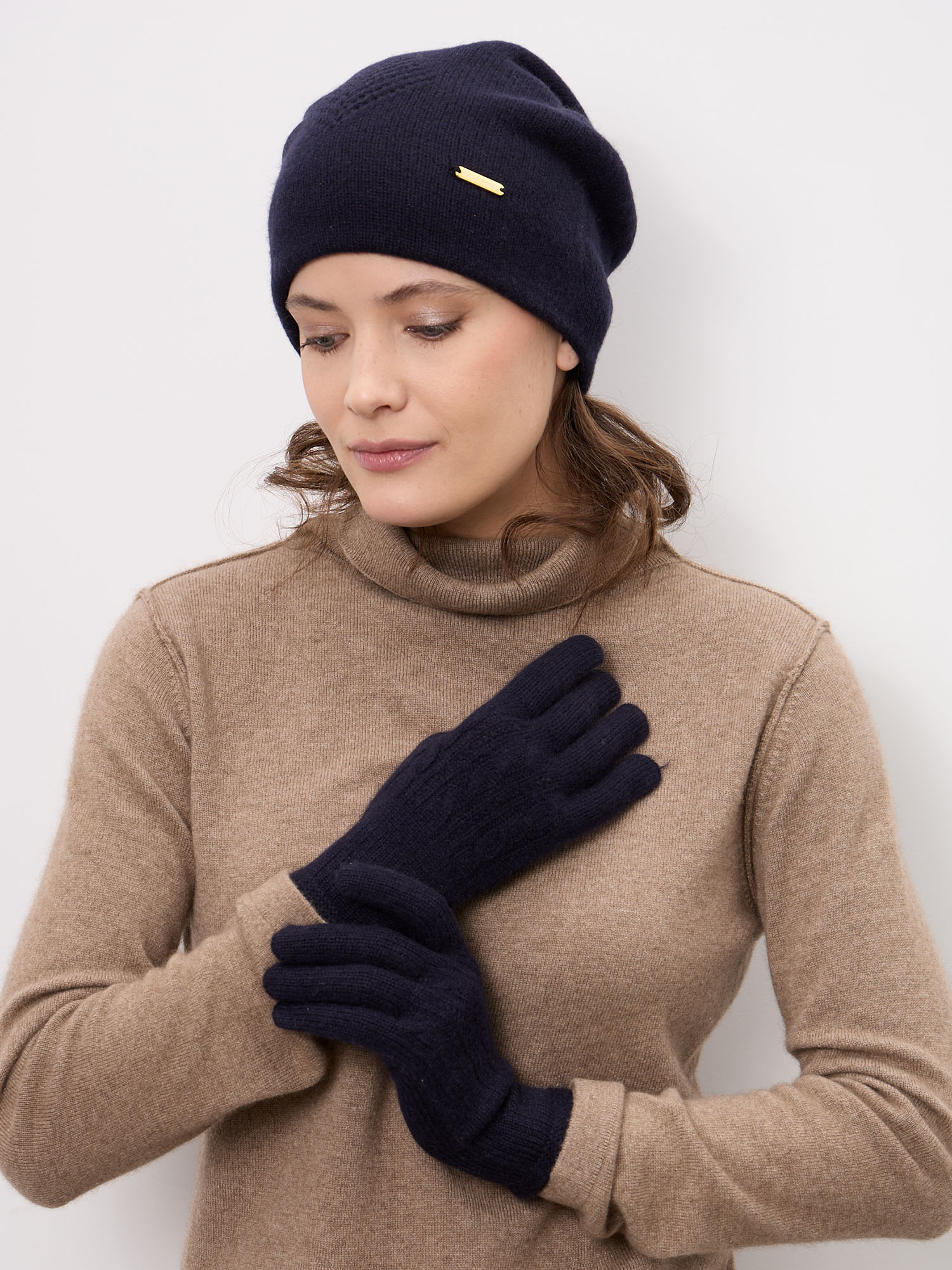 Перчатки выполнены из натурального кашемира — одного из самых ценных и редких материалов. Кашемир отличается исключительной мягкостью, лёгкостью и высокой теплоизоляцией. Он обеспечивает естественную терморегуляцию и подходит даже для чувствительной кожи.