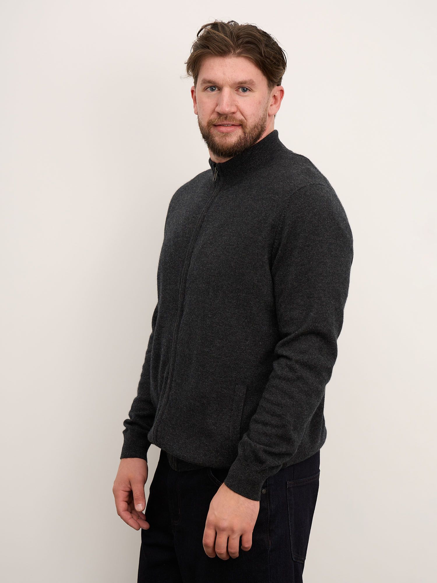 Застёжка на молнию по всей длине, функциональные боковые карманы, эластичные манжеты и нижняя резинка, качественная вязка, сохраняющая форму изделия.