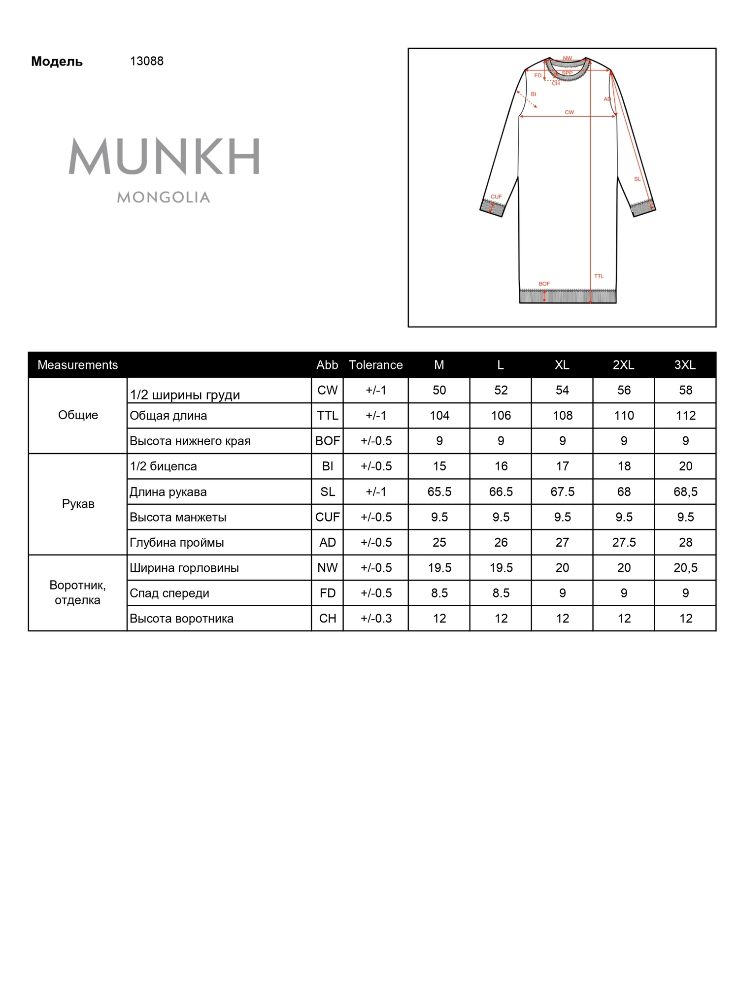 высокий ворот, манжеты на рукаве и подол выполнены "резинкой"
