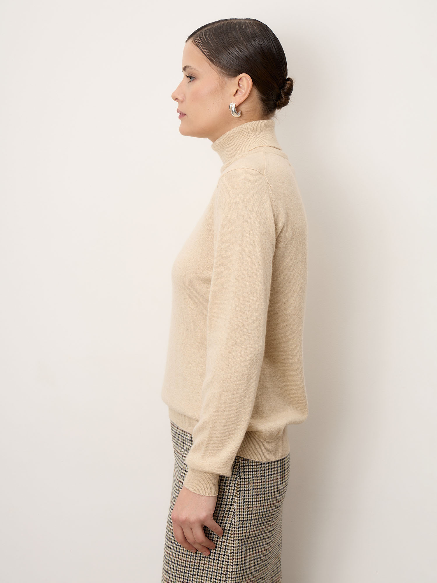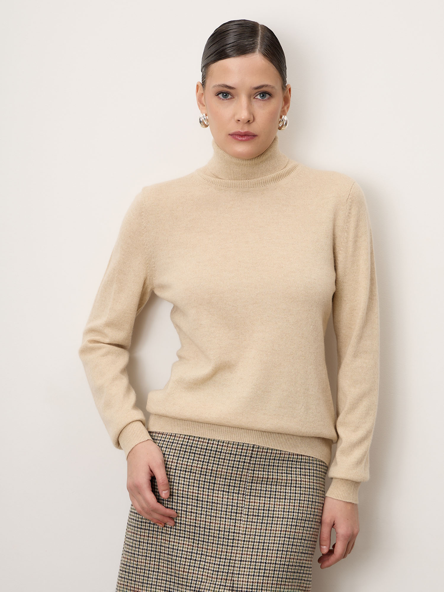 Бежевый — тёплый и универсальный оттенок, который подчёркивает натуральность кашемира и гармонично сочетается с базовой палитрой одежды.